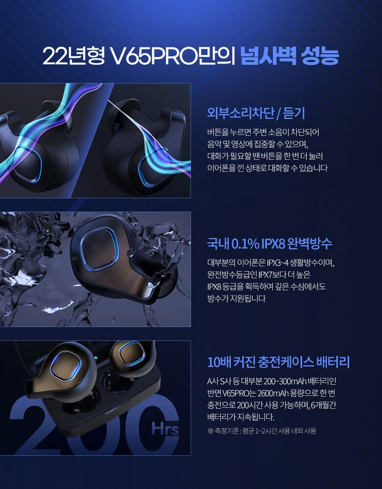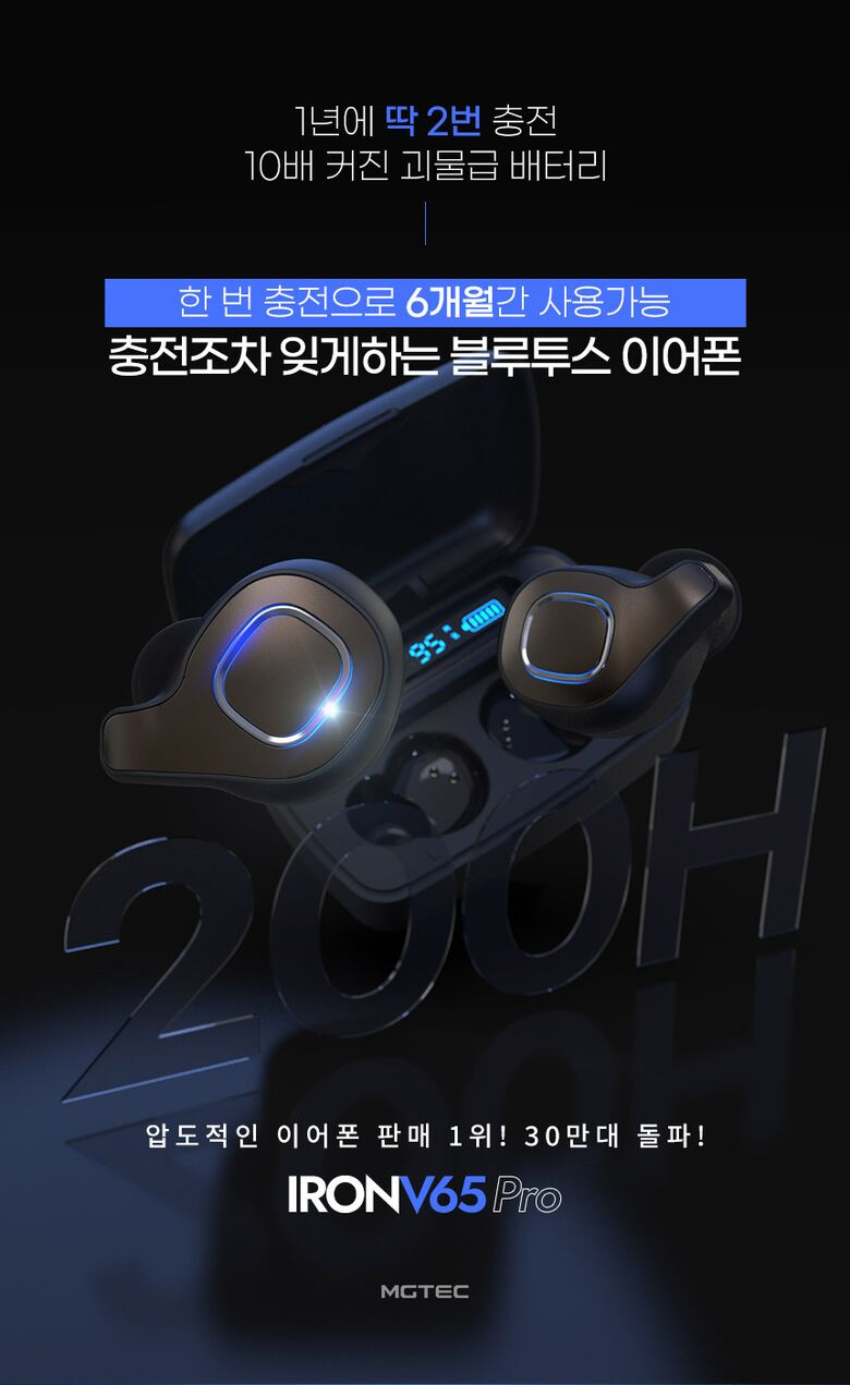 그래서 이번에는 IPX8 완벽방수 기능을 우선으로 검색하다가 아이언 V65 PRO를 구매하게 되었네요. *^^*
